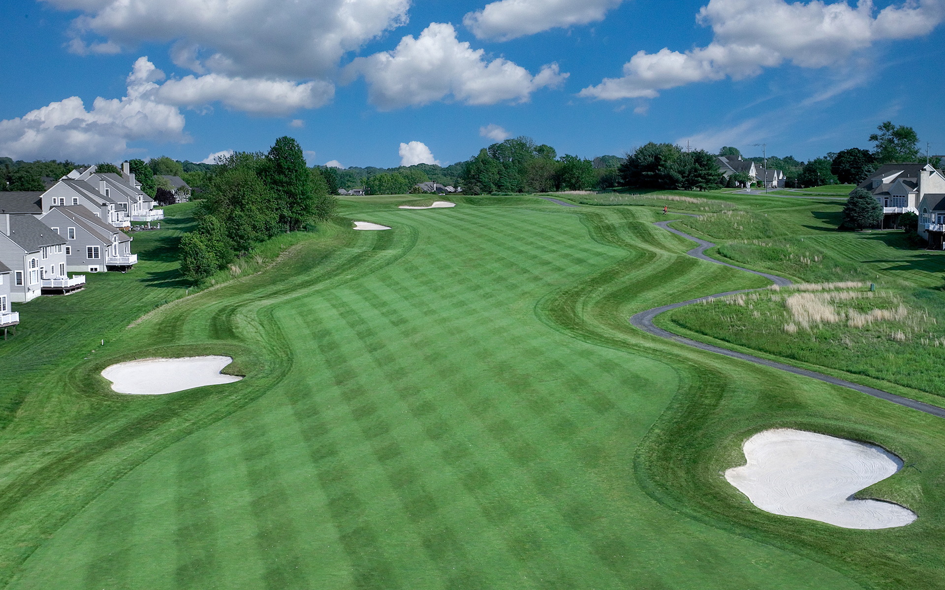 The golf course layout showcases Fazio's artistry, its captivating elevation changes weaving through old-growth oak, beech, holly, and pine trees, all framing stunning vistas. Sunlight glints off meticulously sculpted greens, while terraced tee boxes tempt golfers of all levels with their strategic challenges. Hartefeld National is the quintessential destination for those seeking the pinnacle of Pennsylvania golf - a symphony of natural beauty, expert design, and exhilarating competition.